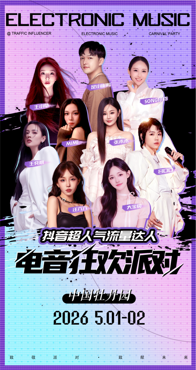中国牡丹园此次电音狂欢派对,以“电子音乐 + 顶流达人 + 潮流派对”为核心,将年轻潮流文化与牡丹文旅 IP 深度融合,打造菏泽首个“春日电音嘉年华”,为游客带来前所未有的沉浸式玩乐体验。本次派对阵容堪称 “抖音顶流集结号”,每一位嘉宾都自带超高人气与舞台魅力。